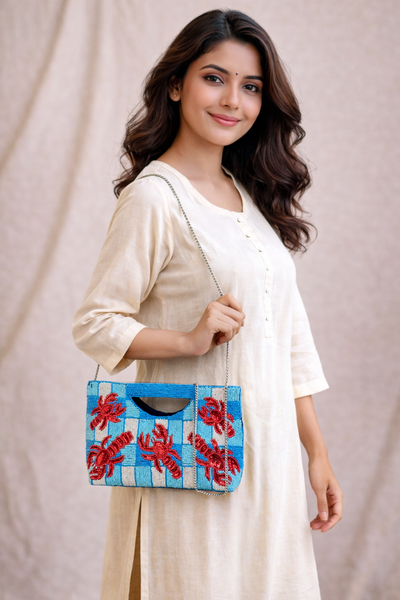 • Material: Eco-friendly fabric with intricate bead embroidery• Size: 11 × 7 × 2.5 inches• Chain sling for a stylish, hands-free carry• Ethically handcrafted in India