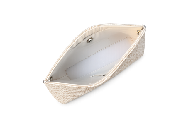 • Material: Eco-friendly fabric with intricate bead embroidery• Size: 11 × 7 × 2.5 inches• Chain sling for a stylish, hands-free carry• Ethically handcrafted in India