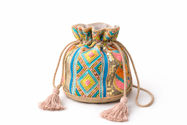 Bohemian: Ethically made with love, this Indian boho potli comes with intricate bead work, and is the perfect festival bag.