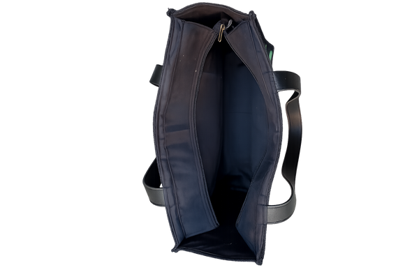 • Size: 14 x 12 x 6 inches • Material: Durable jute & PU leather fabric • Hand embroidered, ethically handcrafted in India • Non-detachable PU handles for comfortable carry